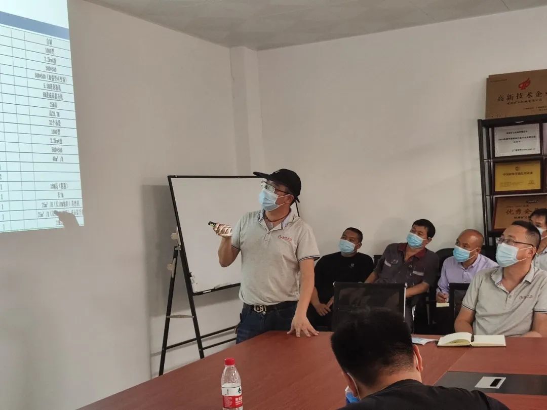 會上,研發(fā)部工程師鄧源就福建、廣西等多個氫氧化鈣生產(chǎn)線項目分別從方案設計、設備采購、以及設備安裝施工過程中遇到的問題做項目總結(jié)匯報。