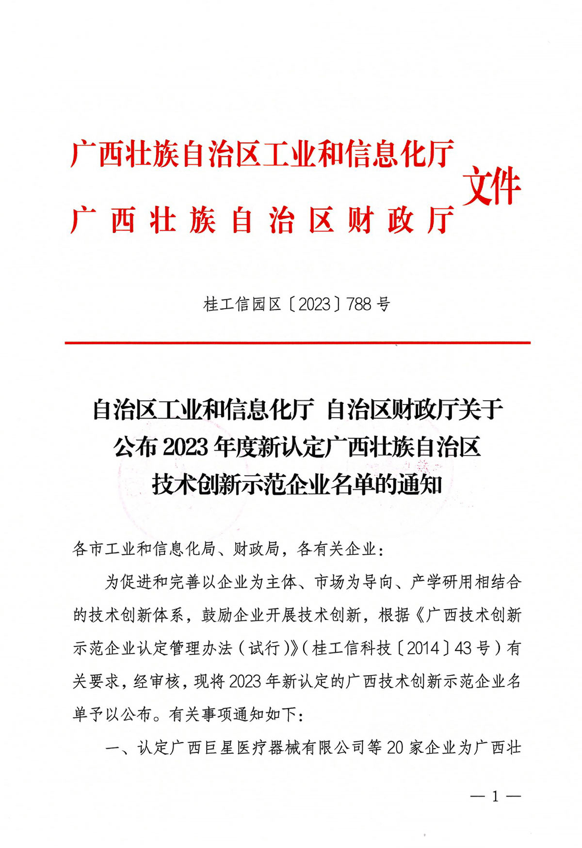 日前,自治區(qū)工業(yè)和信息化廳、自治區(qū)財(cái)政廳公布2023年度新認(rèn)定廣西壯族自治區(qū)技術(shù)創(chuàng)新示范企業(yè)名單的通知,根據(jù)《廣西技術(shù)創(chuàng)新示范企業(yè)認(rèn)定管理辦法(試行)》(桂工信科技〔2014〕43號)有關(guān)要求,經(jīng)市經(jīng)信部門推薦、專家評審、社會公示等環(huán)節(jié),桂林礦山機(jī)械有限公司等20家企業(yè)獲評2023年度新認(rèn)定廣西技術(shù)創(chuàng)新示范企業(yè)。